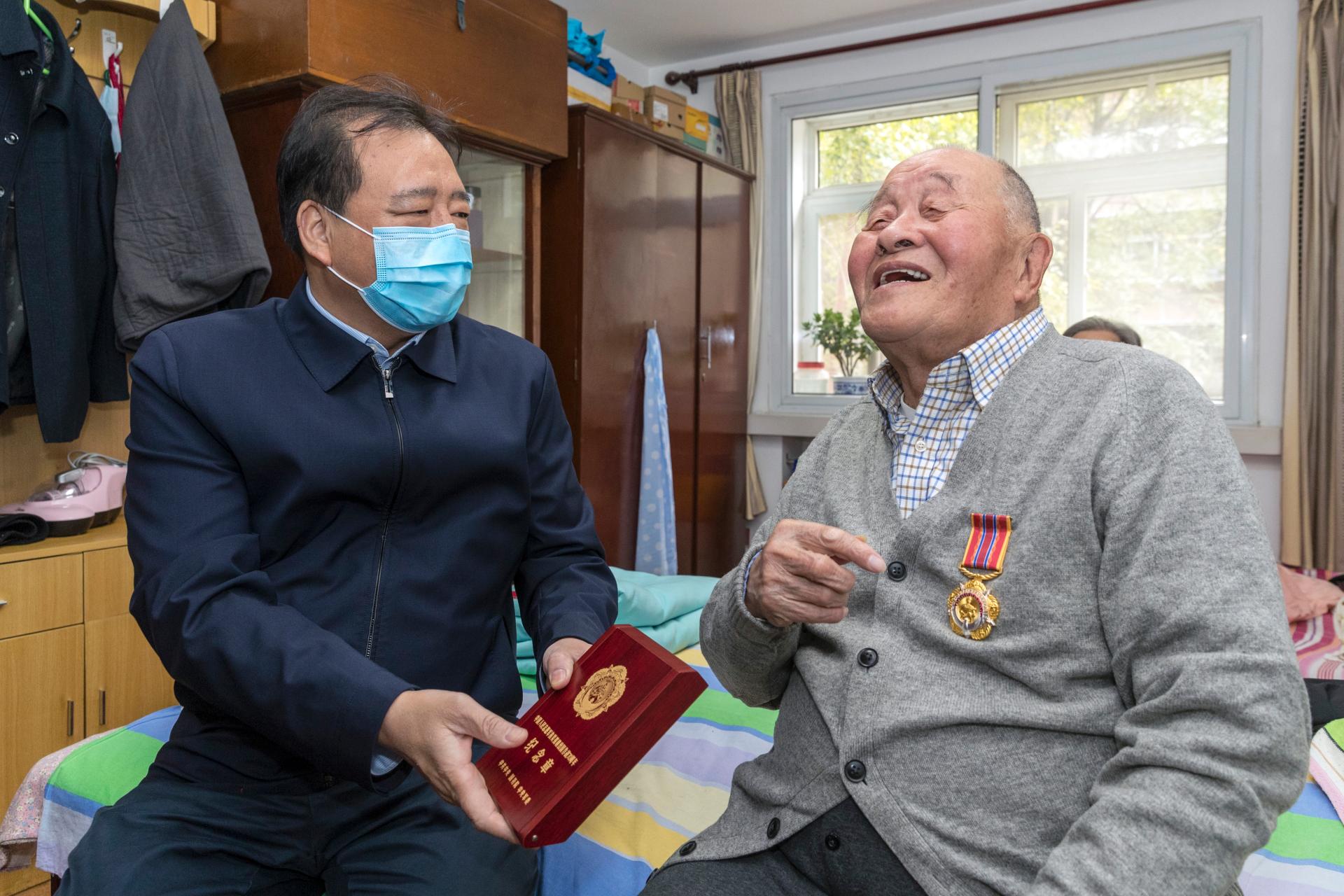 弛金刚刚、李康特地去到邵冠怯同道的家中,将“华夏群众意愿军抗好援晨放洋兴办70周年”留念章收到他脚中,为他佩带留念章,并背他致以密切慰劳战优美歌颂。邵冠怯白叟往年92岁,1945年10月从军退伍,曾参与过束缚和平战抗好援晨和平,于1967年退伍,1980年担当球友会杂务处副处少。
